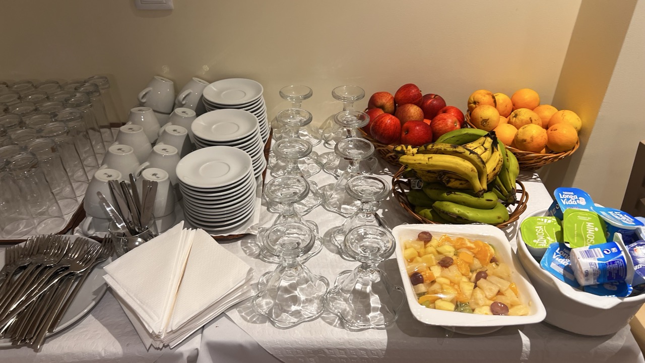 Die Auswahl ist ok, es gibt Eier, Brot, Käse Müsli, Gurken und Tomaten und Obst. Das Brot ist echt lecker!