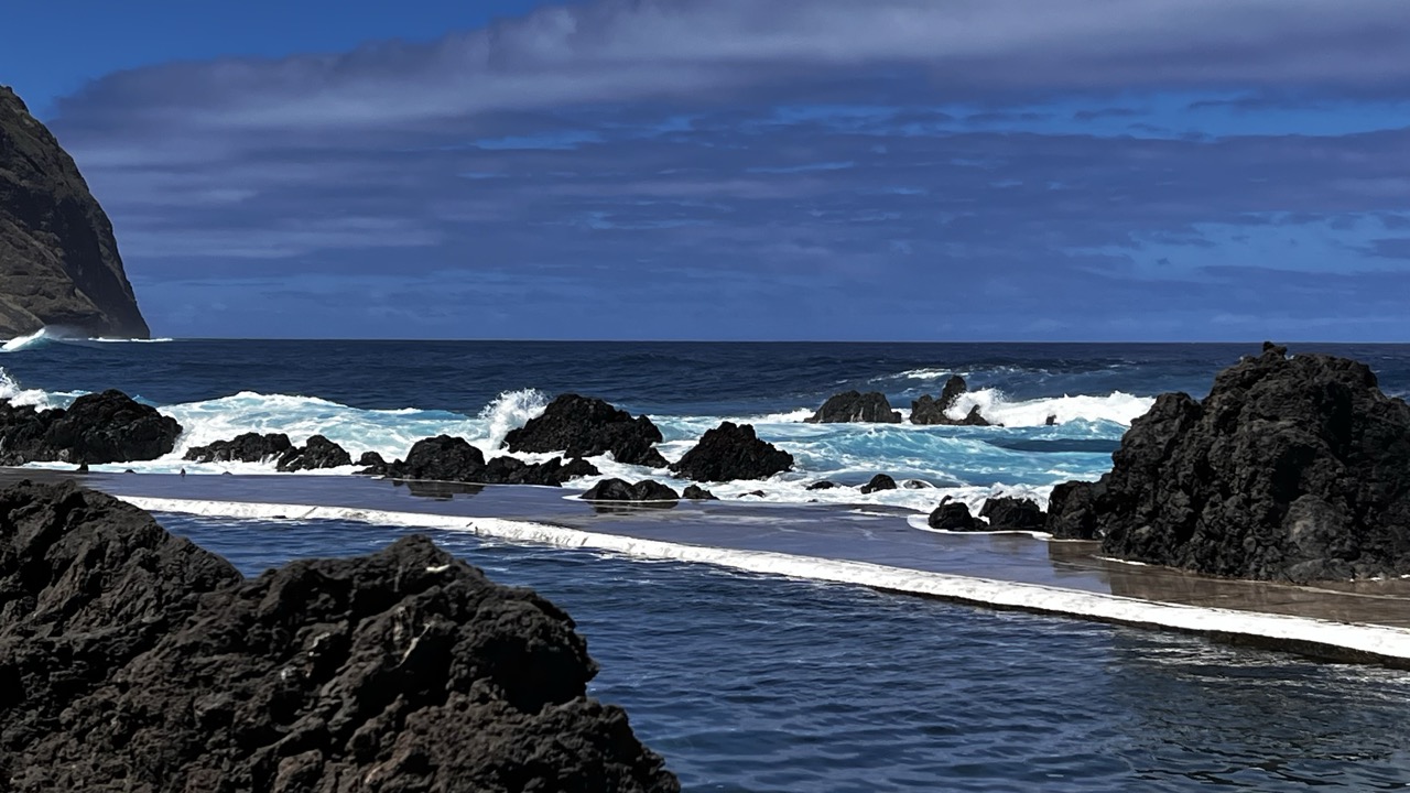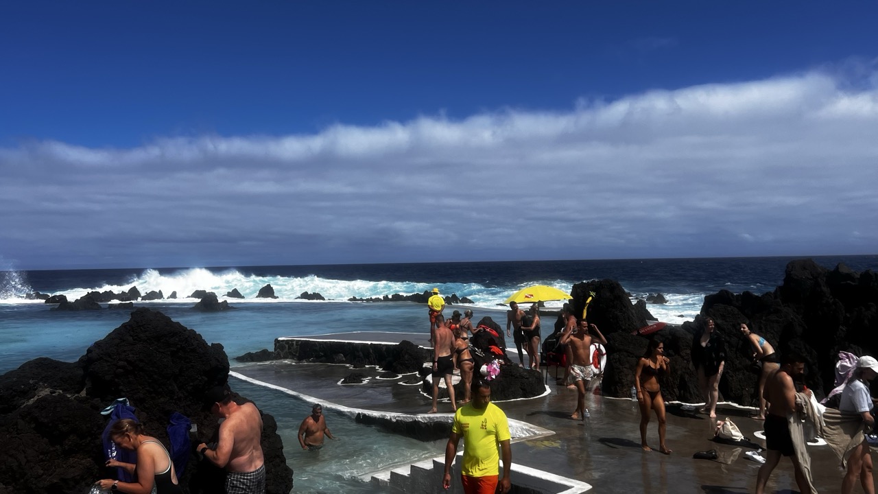 Am Nachmittag besuchen wir die Natural Pools in Porto Moniz, wir zahlen 3 Euro Eintritt pro Person und konnten uns ein Plätzchen sichern.