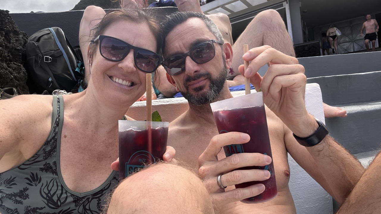 Mit einer Sangria setzten wir uns zu den Pools und beobachten das Treiben.