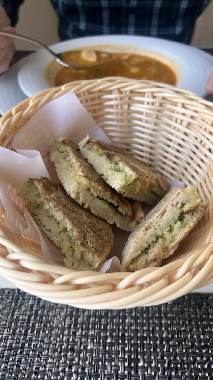 Als Vorspeise wählten wir Fischsuppe und Bolo do Caco.