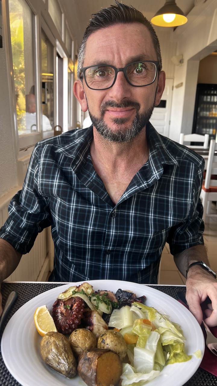 Daniel hatte als Hauptgang Octopus mit Kartoffeln und Kraut.
